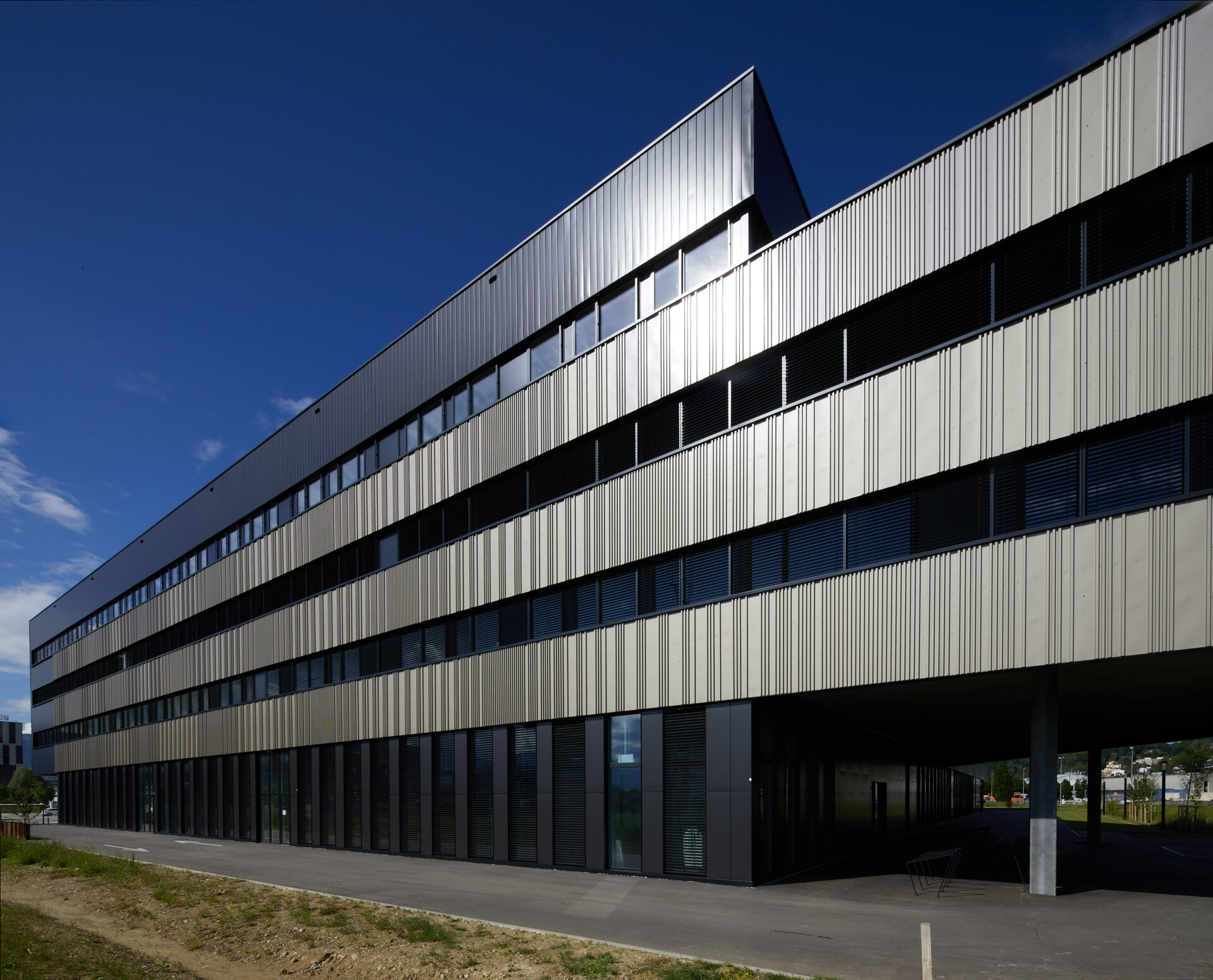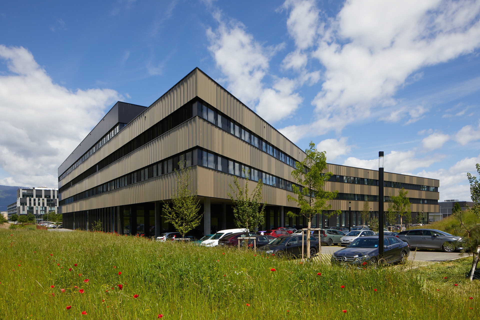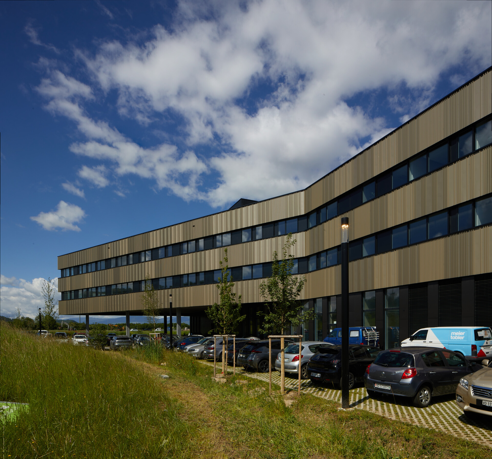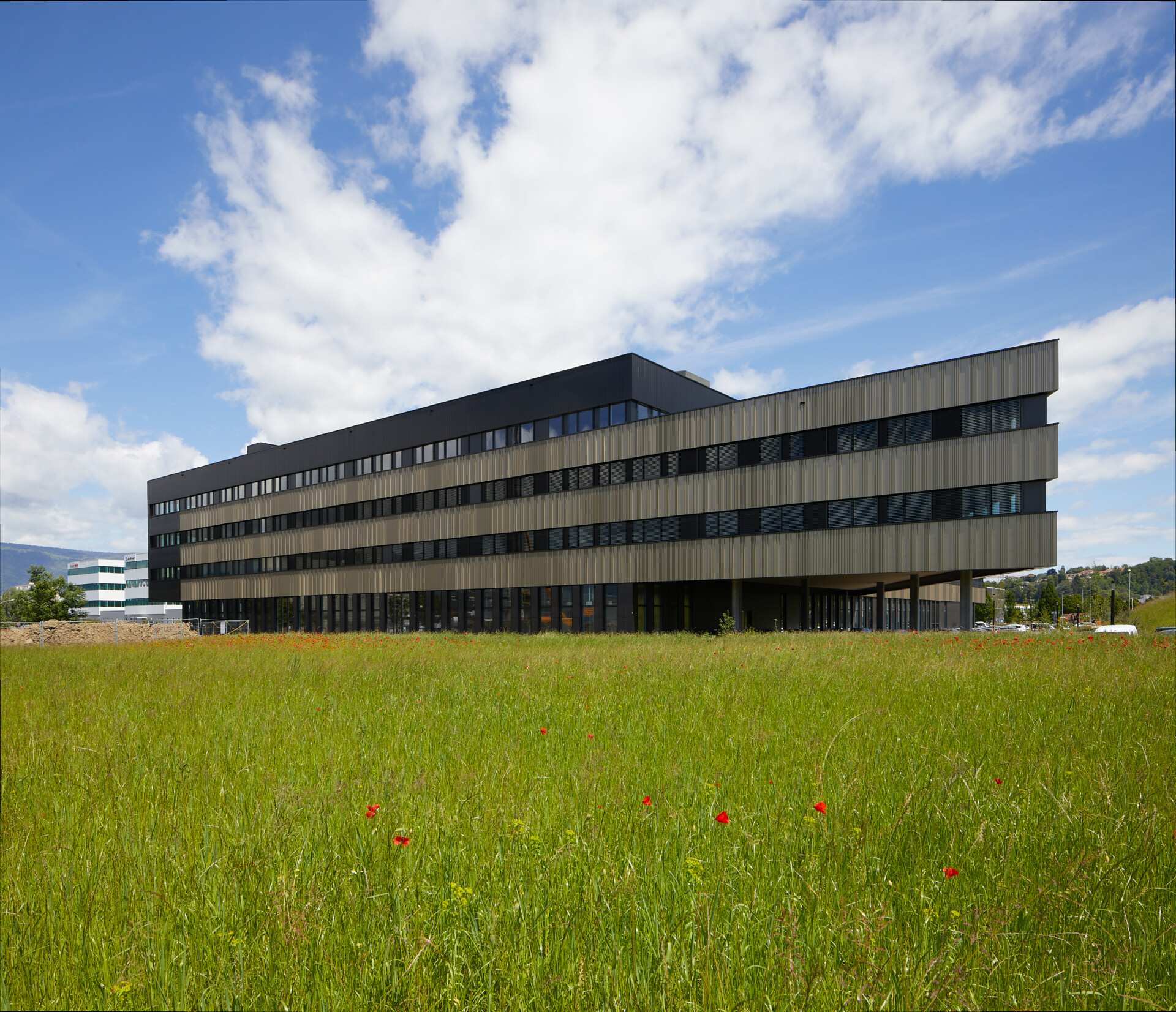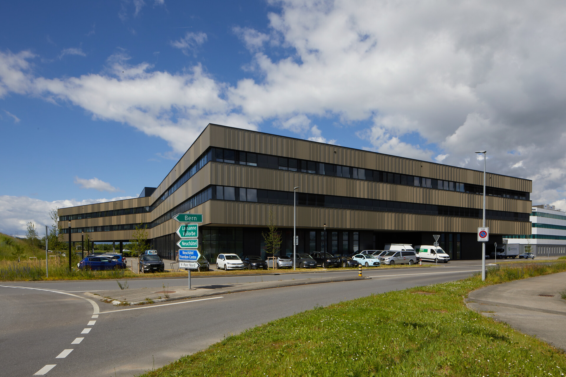 Located in the Parc Scientifique et Technologique, south of Yverdon-les-Bains, the building benefits from excellent connectivity and visibility along the A1 freeway.